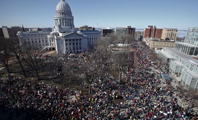 The crowds have been loud but peaceful. Police reported just nine citations for minor offenses as of Friday. Schools throughout the state have closed this week after teachers called in sick, including in the state’s largest district, in Milwaukee.